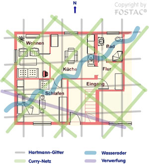 | Geomagnetische Störungen im Kurzbeschreib: Wasseradern sind Wasserströme auf und unter der Erde, dielinks- oder rechtsdrehend sein können. Leider sind gut 70% linksdrehend und deshalb gesundheitsschädigend. Rechtsdrehende Wasseradern sind unschädlich und sind auch als „Heilige Wasser“ (z. B. Lourdes in Frankreich) bekannt. Curry-Netz und Hartmann-Gitter: Das Hartmann-Gitter (nach Dr. Ernst Hartmann) verläuft von Norden nach Süden und von Osten nach Westen. Das Curry-Netz (nach Dr. Manfred Curry), auch bekannt als «Krebs-/Rheuma-Gitter», verläuft in den Zwischenhimmelsrichtungen. Diese beiden Erdstrahlen sind für den Organismus schädlich. Verwerfungen sind ebenfalls schädlich. Bereits im alten Rom waren sie bekannt. Die berühmteste Verwerfung ist der Andreasgraben in Kalifornien Elektrosmog Über die Auswirkung von Elektrosmog wurden bereits die verschiedensten Untersuchungen angestellt. Menschen, Tiere und Pflanzen reagieren in hohem Masse auf Elektrosmog. Das seit Jahren immer dichter werdende Mobilfunknetz, Hochspannungsleitungen, Fahrbahnleitungen, Satellitenstationen und elektrische Einrichtungen unterstützen die Strahlenbelastung in unserer Atmosphäre und verursachen entsprechende Disharmonien auf der Erde. So hat die Medizin vermehrt neue Krankheitsbilder registriert. |